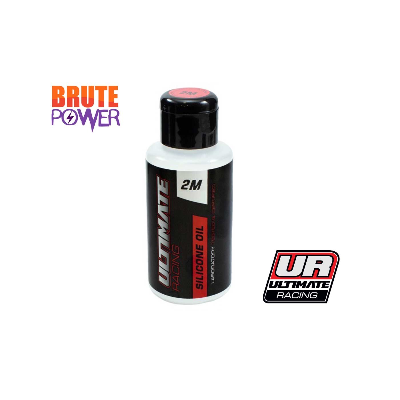 Botella de 75 ml de aceite de silicona para diferenciales de 2.000.000 CPS de Ultimate Racing. El aceite de diferencial Ultimate Racing esta fabricado con 100% pura silicona para ofrecer un rendimiento estable a cualquier temperatura de trabajo retrasando la fatiga de los diferenciales. La graduación de las siliconas es en Cst y como mayor es el número del artículo mas densidad tiene. También contiene aditivos antifricción que minimizan la fricción y así el desgaste de los piñones del diferencial.