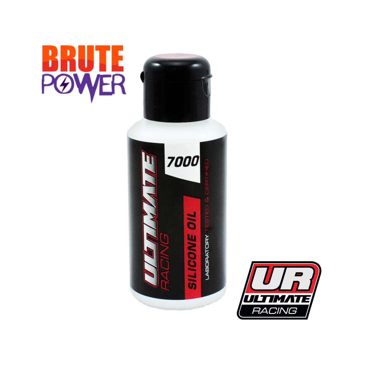 Botella de 75 ml de aceite de silicona para diferenciales de 7000 cps de Ultimate Racing. El aceite de diferencial Ultimate Racing esta fabricado con 100% pura silicona para ofrecer un rendimiento estable a cualquier temperatura de trabajo retrasando la fatiga de los diferenciales. La graduación de las siliconas es en Cst y como mayor es el número del artículo mas densidad tiene. También contiene aditivos antifricción que minimizan la fricción y así el desgaste de los piñones del diferencial.