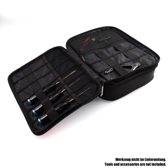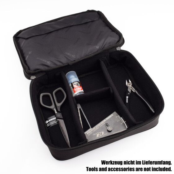 Ya sea en la pista de carreras, en el área de aficionados, en el parque de skate o en un sendero, siempre es importante contar con herramientas a la mano para realizar ajustes o reparar daños. La Bolsa de Herramientas RUDDOG cuenta con dos compartimentos, ofreciendo espacio para herramientas pequeñas como destornilladores, llaves de tuercas, tijeras o pinzas, además de permitir guardar elementos más grandes como medidores de caída, calibradores o incluso taladros eléctricos.