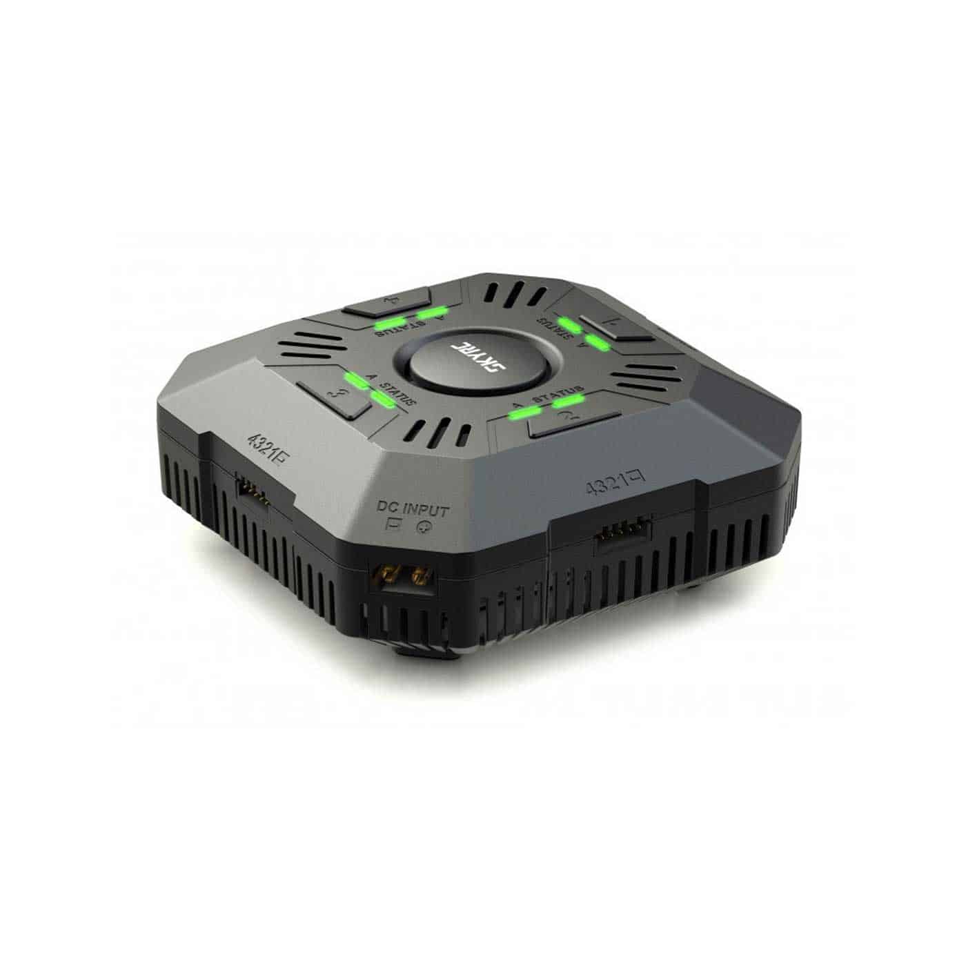 El Cargador Skyrc e4Q es un cargador especial de baterías de LiPo, que puede cargar baterías LiPo 2S / 3S / 4S en 4 canales simultáneamente. La fuente de alimentación principal es de entrada de corriente continua, con un conector tipo XT60, La corriente de carga se puede configurar entre 2A, 3A o 5A mediante un botón. La capacidad cargada y la corriente de carga pueden mostrarse en los indicadores LED por variaciones de color así como indicaciones sonoras.