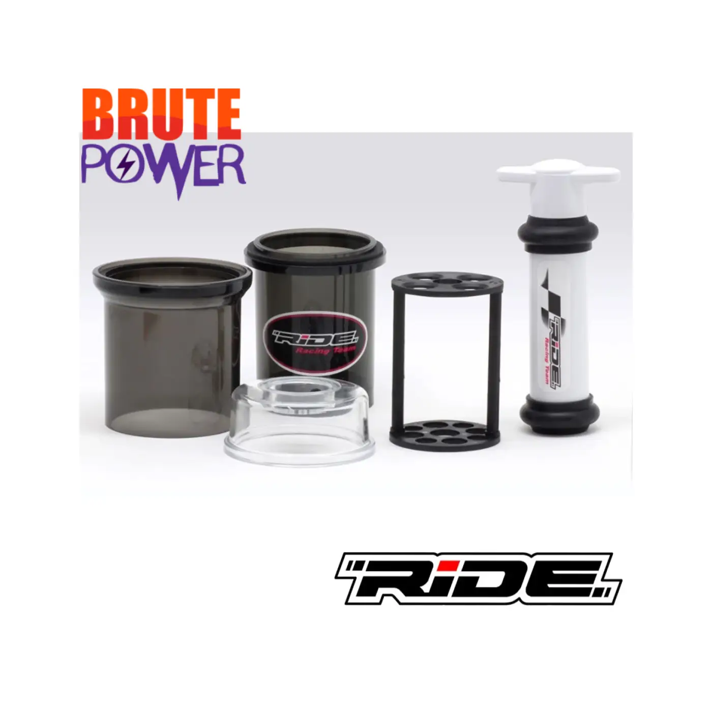 Gracias a su sistema de vacío, el RIDE AIR REMOVER permite extraer completamente las burbujas de aire atrapadas en el interior de los amortiguadores y diferenciales. Esta operación mejora el comportamiento del coche RC, ofreciendo una suspensión más estable y precisa tanto en escala 1/10 como en 1/8.
