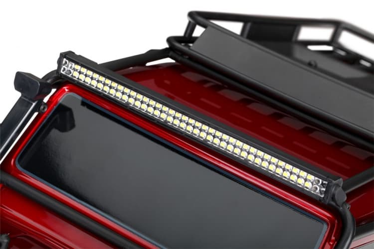 Interruptor Diseñado según los rigurosos estándares de Traxxas y del fabricante líder de iluminación RIGID®, la barra de luz LED utiliza tecnología LED de montaje en superficie y una lente transparente personalizada para un realismo insuperable. El interruptor integrado controla el brillo tanto de la barra de luces como de los faros. La barra de luces se atornilla directamente al Land Rover Defender ExoCage, pero las pestañas de montaje universales también permiten una fácil instalación personalizada en una variedad de superficies. También disponible por separado TRX8025,