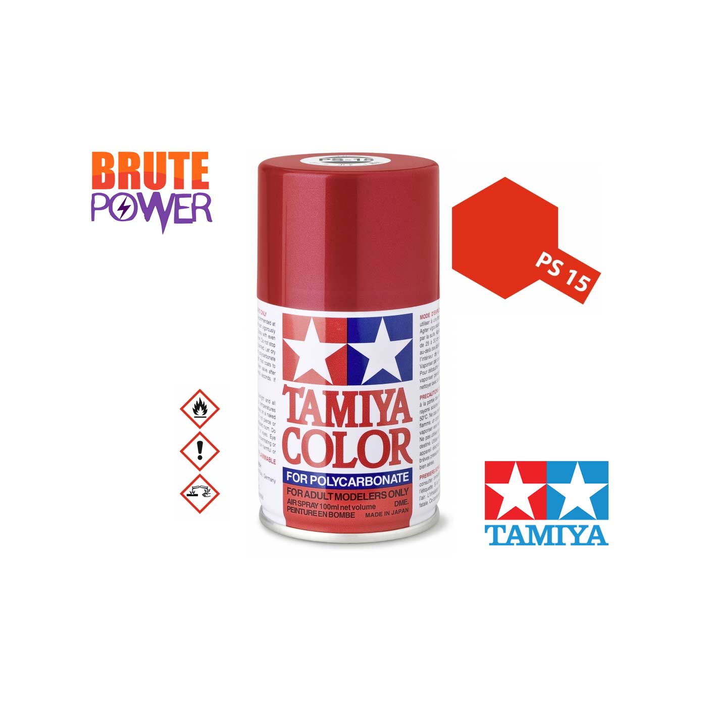 Spray pintura color rojo metalizado PS-15 ref 86015 de la marca Tamiya para Policarbonato, adecuado para carrocerías de Lexan.