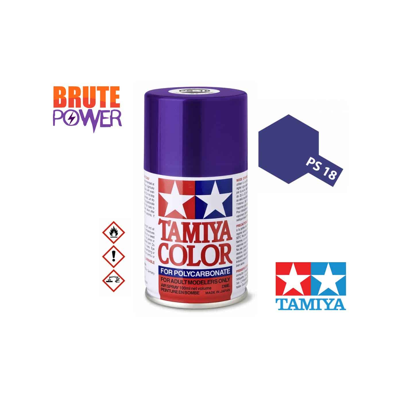 Spray pintura color púrpura metalizado PS-18 ref 86018 de la marca Tamiya para Policarbonato, adecuado para carrocerías de Lexan.