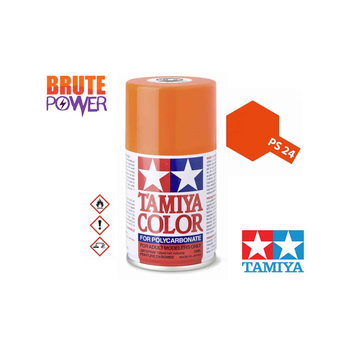 Spray pintura color naranja fluor PS-24 ref 86024 de la marca Tamiya para Policarbonato, adecuado para carrocerías de Lexan.