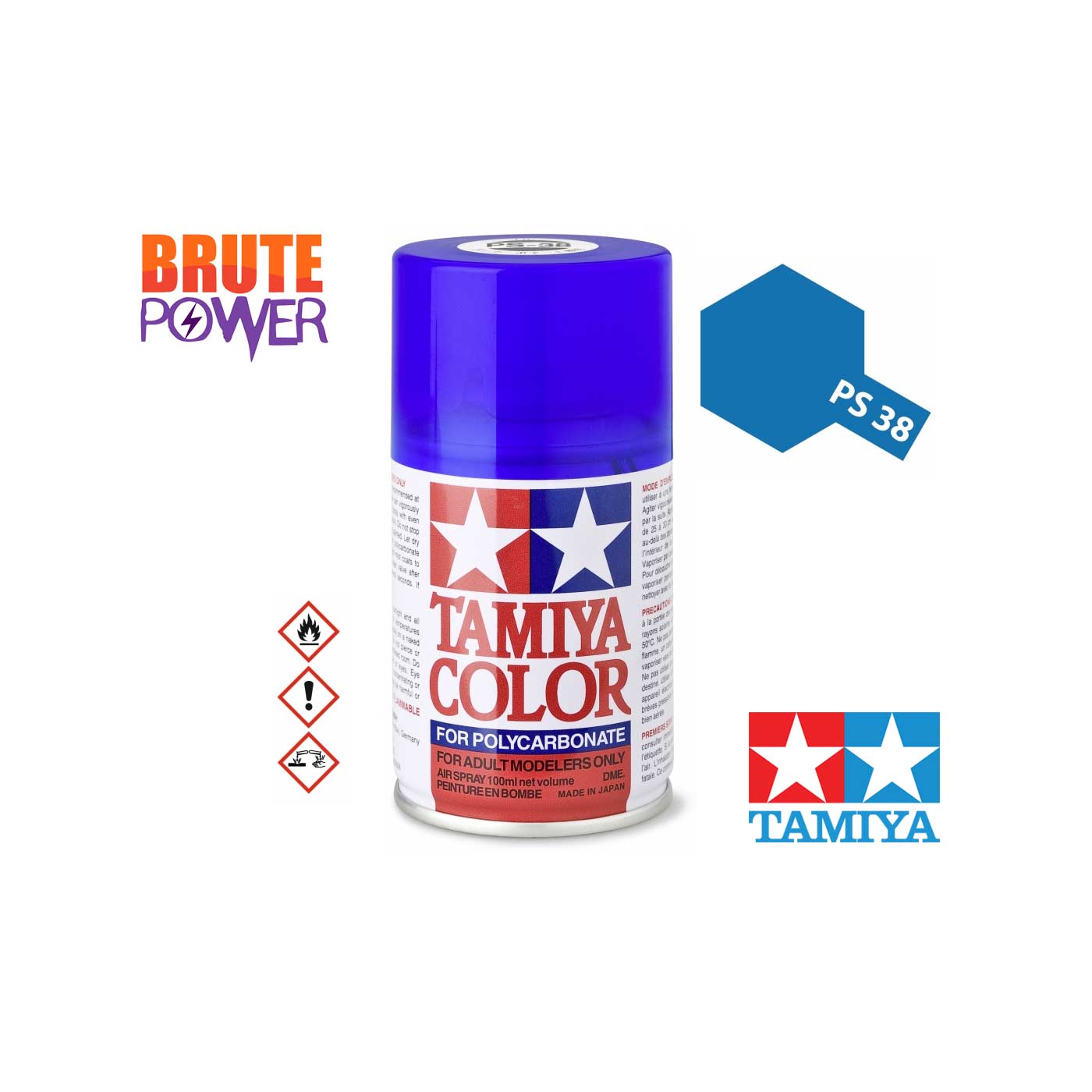 Spray pintura color azul traslucido PS-38 ref 86038 de la marca Tamiya para Policarbonato, adecuado para carrocerías de Lexan.