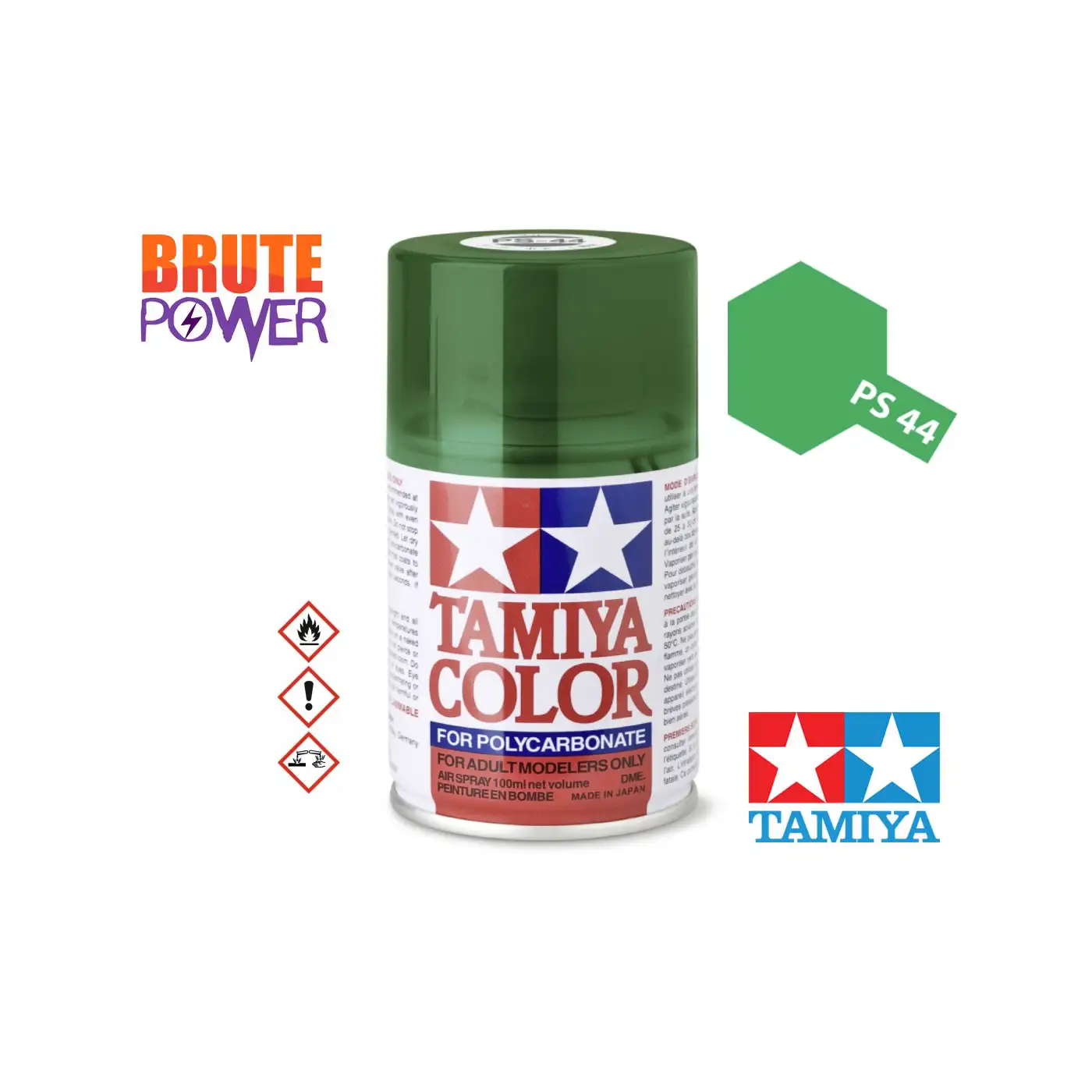 Spray pintura color verde traslucido PS-44 ref 86044 de la marca Tamiya para Policarbonato, adecuado para carrocerías de Lexan.