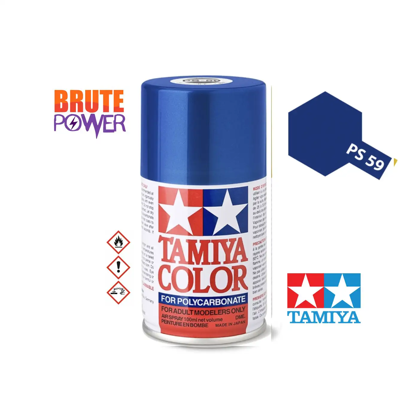 Spray pintura azul oscuro metalizado PS-59 ref 86059 de la marca Tamiya para Policarbonato, adecuado para carrocerías de Lexan.