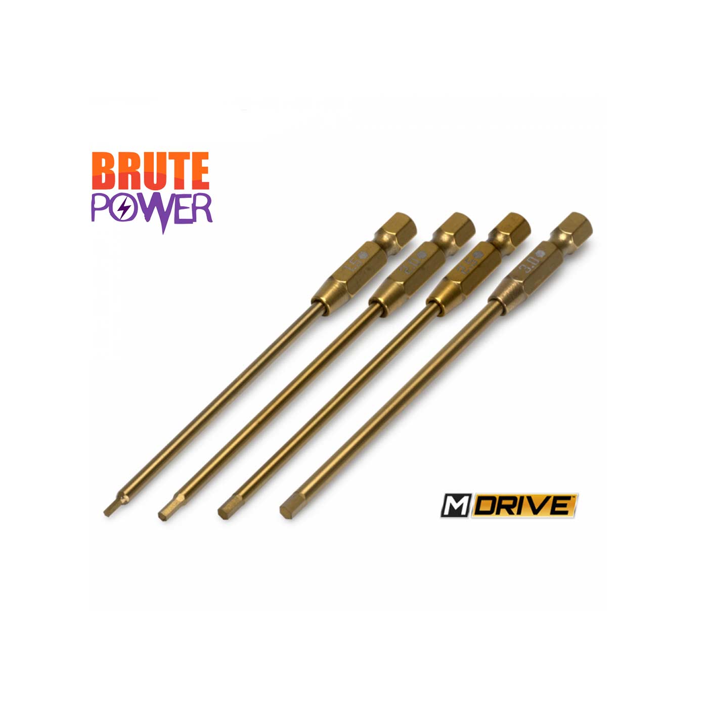 Juego de brocas revestidas en Ti para herramientas eléctricas M-DRIVE – Hexágonos rectos – 1,5, 2, 2,5 y 3 mm