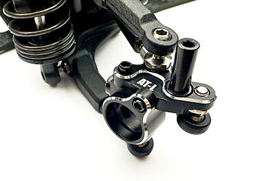Fabricada en aluminio mecanizado, esta placa ofrece una rigidez muy superior a la pieza de serie y una precisión constante en el guiado de la dirección. El diseño “AKIRA”, desarrollado junto a Akira Tayui del Team Rêve D, optimiza el ángulo del kingpin y el trail para conseguir una entrada en curva más afilada y una dirección eficaz mientras el coche mantiene el derrape. El resultado es un mejor aprovechamiento de la tracción delantera y un balance más predecible, incluso con configuraciones de chasis exigentes.