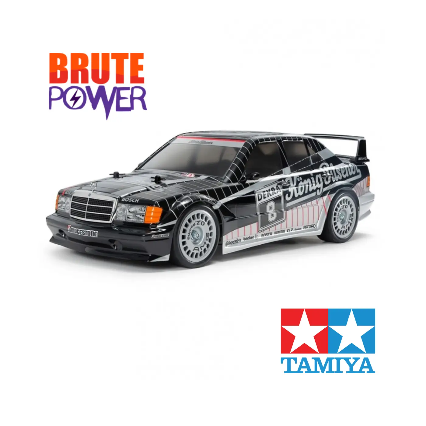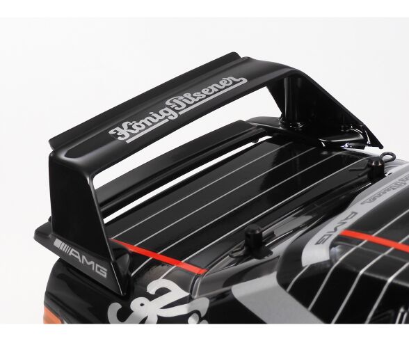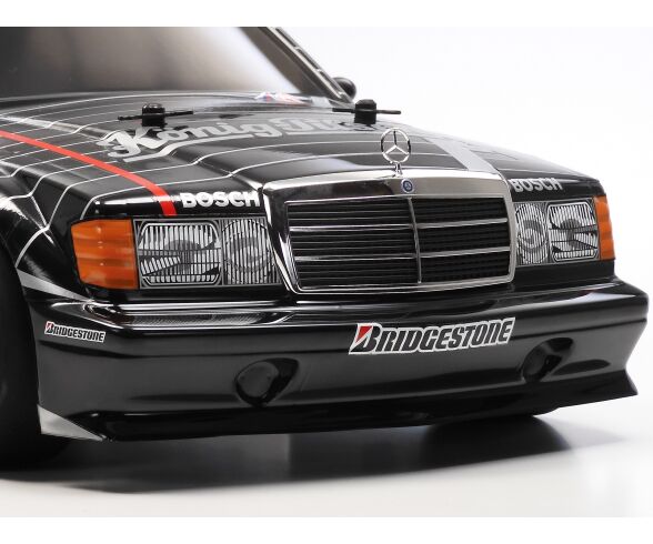 Este modelo se inspira en el Mercedes-Benz 190 E 2.5-16 EVO II que compitió en el Campeonato Alemán de Turismos de 1991, famoso por su aerodinámica extrema, sus alerones sobredimensionados y su presencia agresiva en pista. La carrocería de policarbonato reproduce con precisión las líneas del coche real y llega pintada en negro y plata, con cristales ahumados, lista para montar.