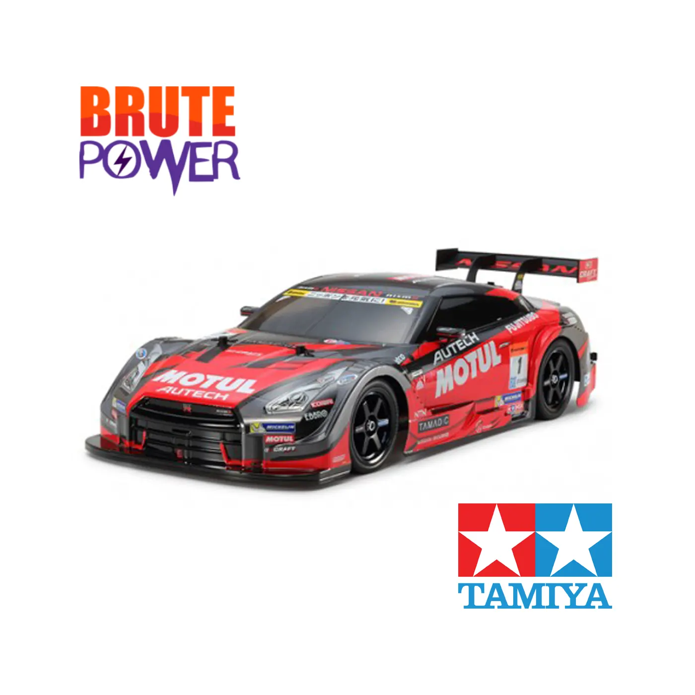El Tamiya Nissan GT-R Motul Autech es un modelo R/C que destaca por su detallado cuerpo de policarbonato, etiquetas realistas y chasis TT-02 adaptable con tracción 4WD. Ofrece múltiples ajustes, fácil ensamblaje y un diseño espectacular con ruedas negras de 6 radios, ideal para aficionados y coleccionistas.