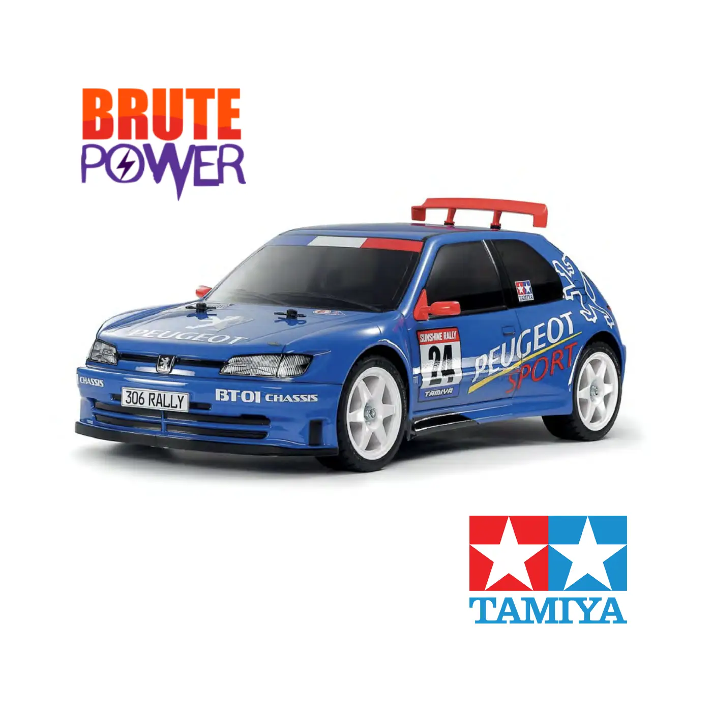 El Tamiya Peugeot 306 Maxi es un modelo RC a escala 1/10 con chasis BT-01 de dos ruedas motrices. Cuenta con una carrocería de policarbonato que replica el Peugeot 306 Maxi de rally. Incluye motor 540 y variador de velocidad, mientras que el equipo RC, batería y cargador se venden por separado.