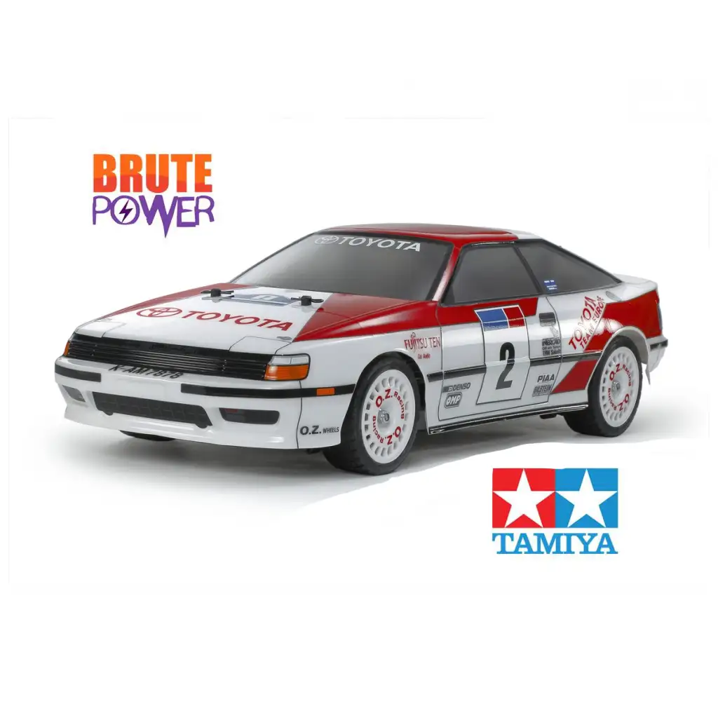 La cuarta generación del Toyota Celica se completó con el modelo tope de gama GT-Four (ST165) en octubre de 1986. Con la misma forma aerodinámica de hatchback, este coche estaba propulsado por un motor turbo transversal DOHC de 2 litros y 185 CV con intercooler agua-aire, y una transmisión 4×4 permanente con diferencial central de bloqueo mecánico. En el Campeonato del Mundo de Rallyes de 1990, este coche ganó cinco veces. Basado en el chasis TT-02, este kit RC reproduce el Toyota Celica GT-Four (ST165).