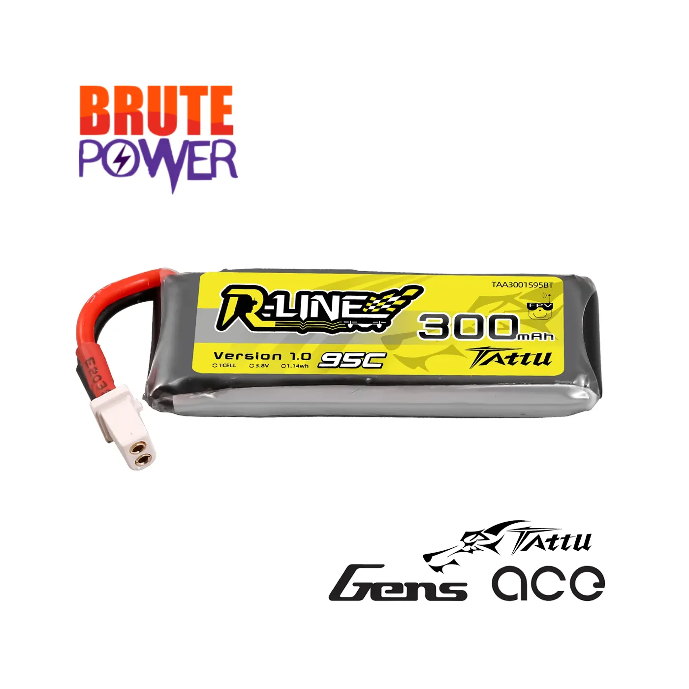 Tattu 300mAh 3.8V 95C 1S1P HV LiPo con conector BT2.0