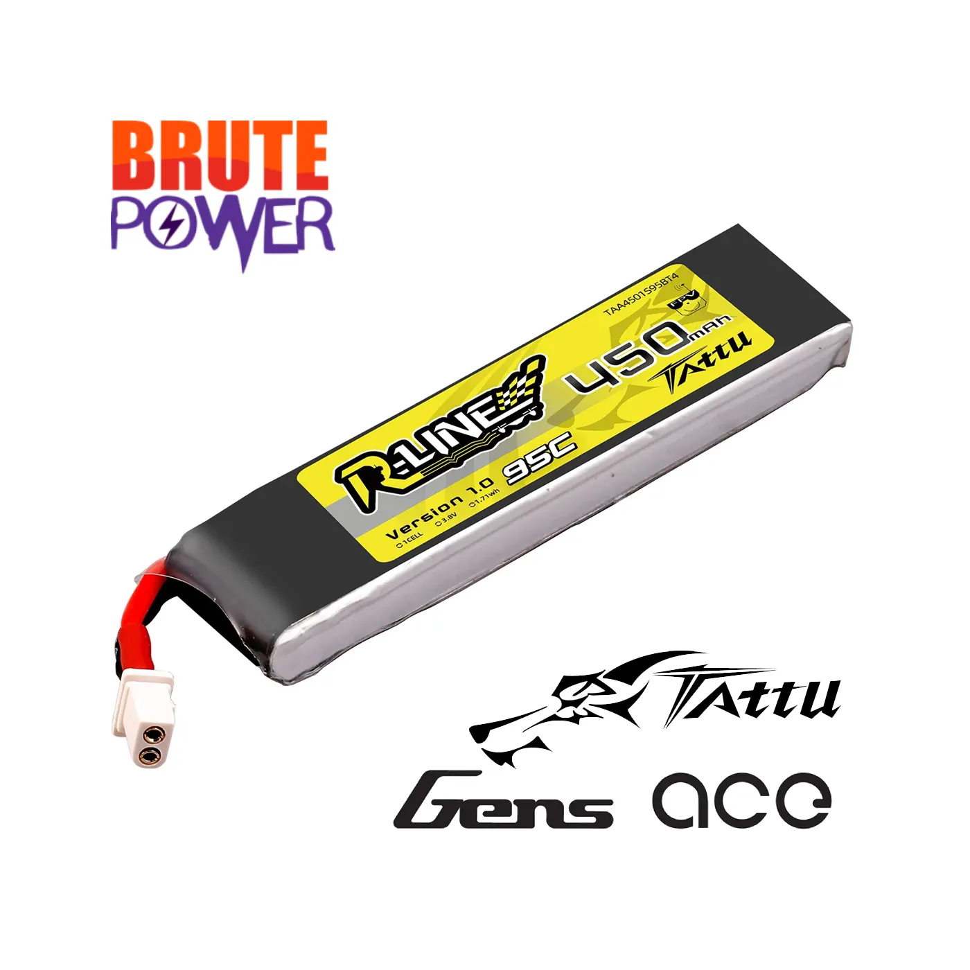 Tattu R-Line 450mAh 3.8V 1S 95C LiPo con conector BT2.0 (Pack de 4)