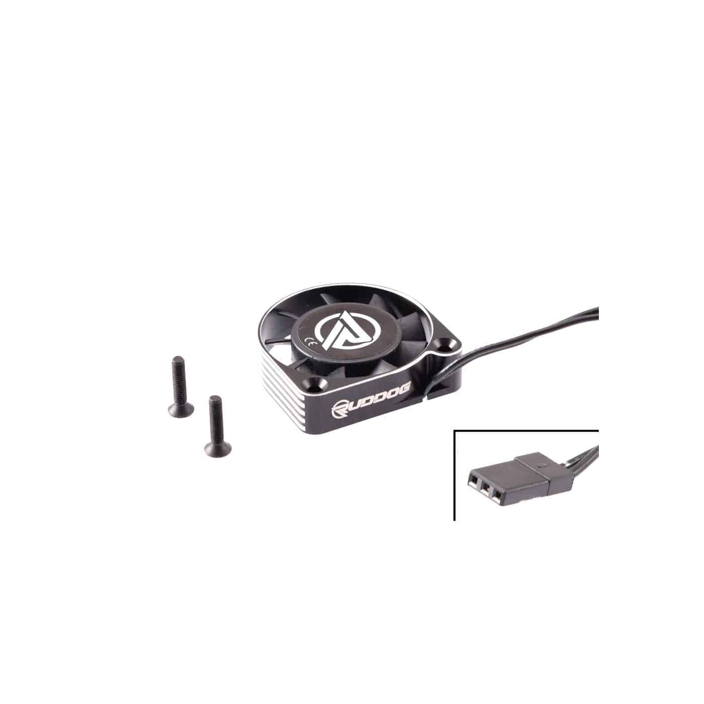 The RUDDOG 40mm Aluminium HV High Speed Cooling Fan was especially developed for the needs of RC car racing. Designed in Germany, the aluminium fan features a uniquie design, which not only looks great, but also saves spaces under your body. The high-speed fan is suitable for LiHV batteries and can be used up to 8.7V. It has a 200mm long black wire with a laser marked JR style receiver plug.